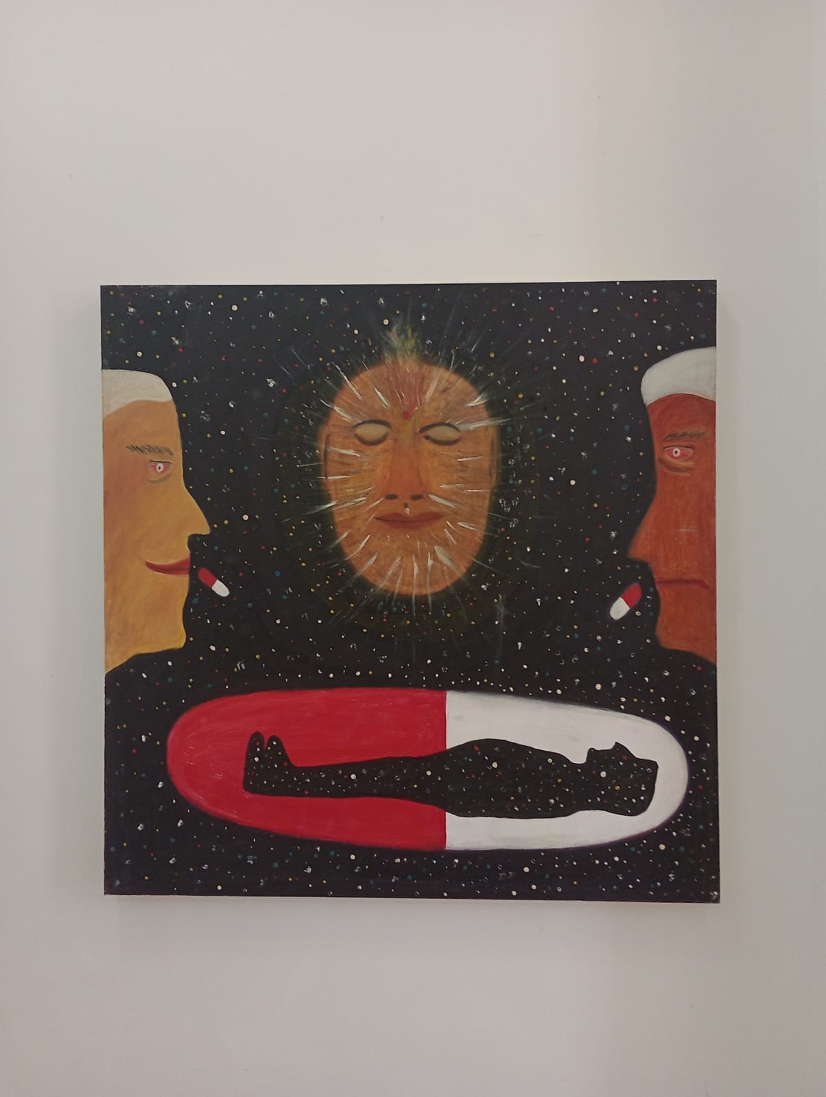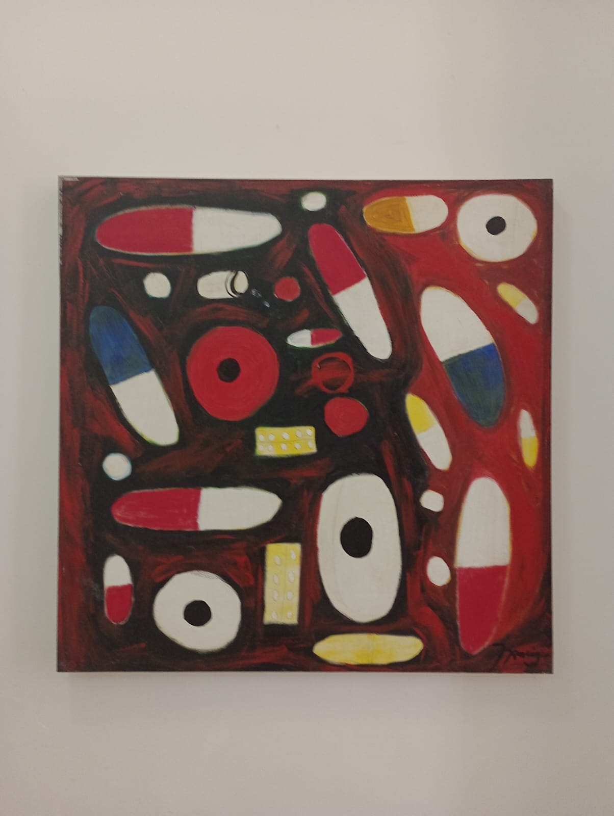Telas em acrílico da série ALTA ANSIEDADE que foi exposta na Cinemateca do Museu de Arte Moderna do Rio de Janeiro – MAM, em 2023, noticiada no Jornal O Globo, na Revista Museu, entre outros veículos.